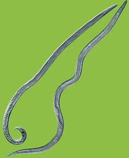松材线虫极其微小,体长约为0.7毫米,肉眼无法观测。松材线虫侵入树木后,会引起树木针叶失水褪绿,然后整株枯死,也有侧枝枯死现象,针叶不易脱落呈现红褐色,通常当年发病当年死亡,少量翌年死亡。松材线虫病是一种毁灭性植物疫病,最快40天就可导致树木死亡,2-3年可造成大片松林死亡,是巨大的生态灾难,造成的经济损失不可估量。